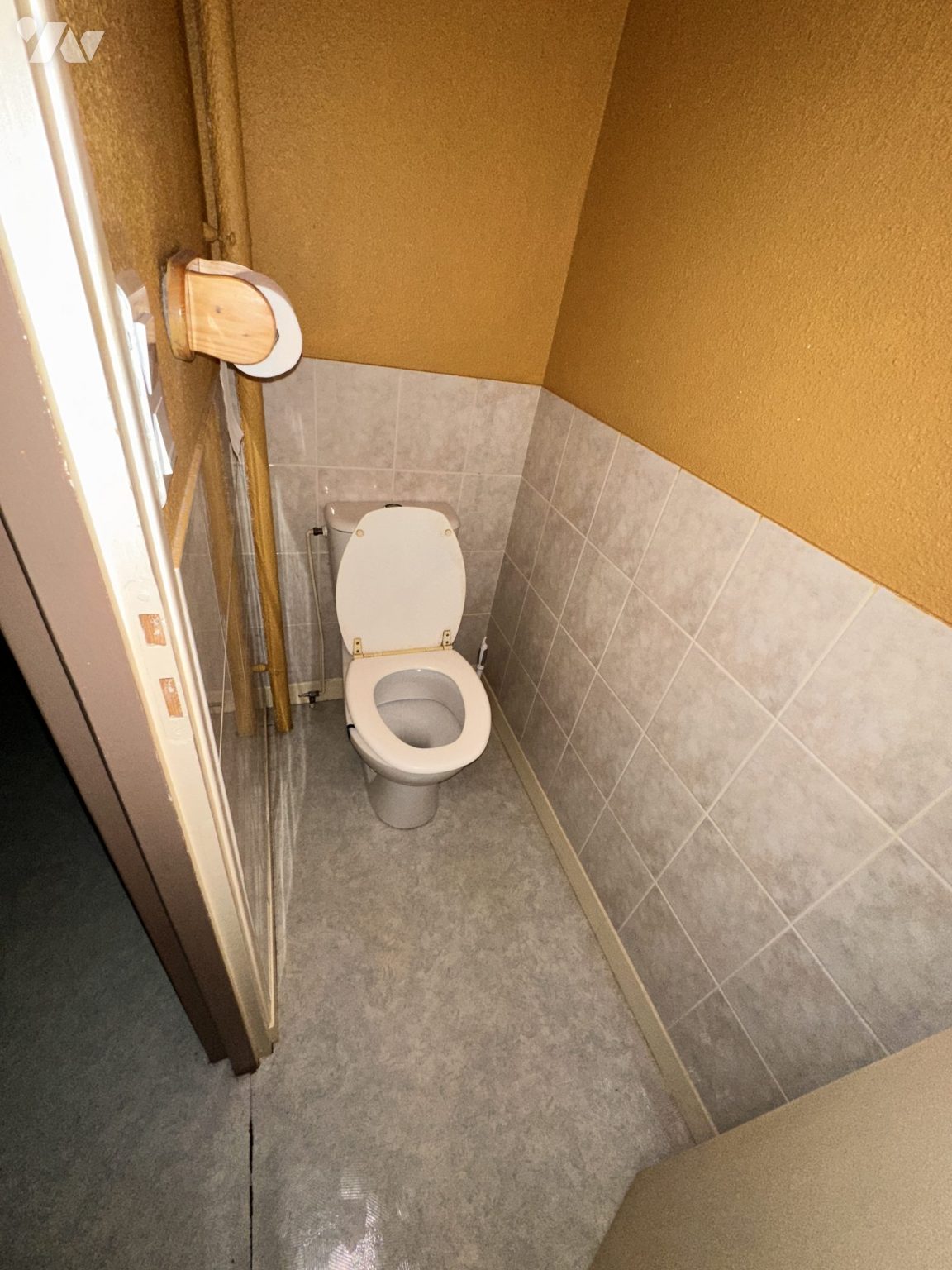 . À l'étage : Une cuisine ouverte sur pièce de vie, deux chambres, une salle d'eau, et un WC